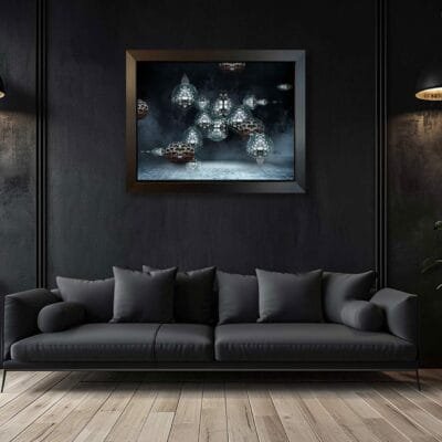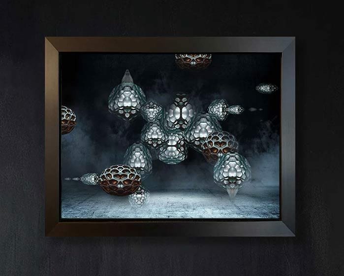 Substrate: A sophisticated modern silvery look called Brushed Aluminum Dibond — two 0.3 mm aluminum skins with a polyethylene core. Lightweight, extremely rigid, and better suited for indoor display. The no-frame option includes either an invisible ¾-inch floating back frame or simply a flat piece of aluminum if you prefer to install your own mounting hardware.