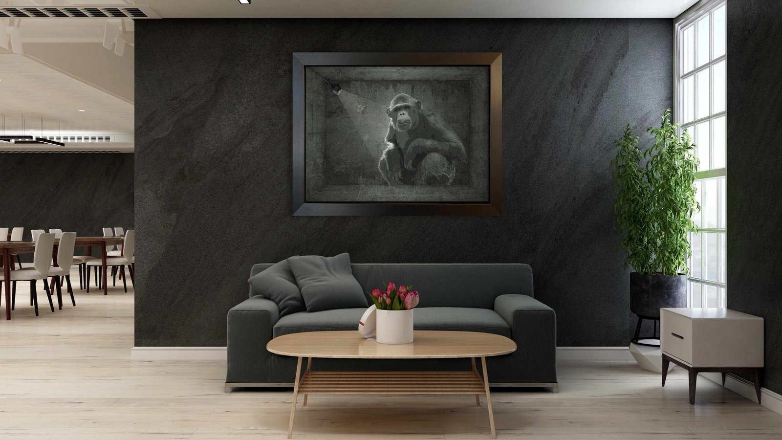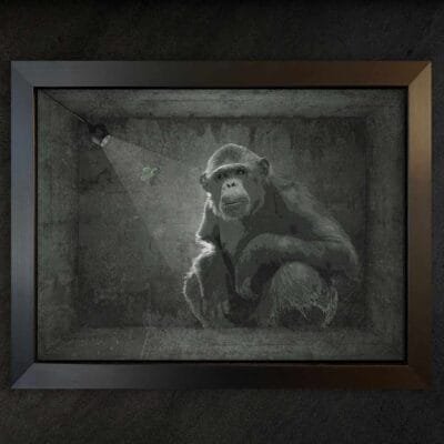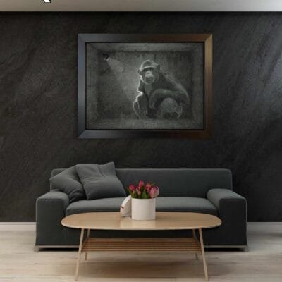 A sophisticated modern silvery look called Brushed Aluminum Dibond — two 0.3 mm aluminum skins with a polyethylene core. Lightweight, extremely rigid, and better suited for indoor display. The no-frame option includes either an invisible ¾-inch floating back frame or simply a flat piece of aluminum if you prefer to install your own mounting hardware.